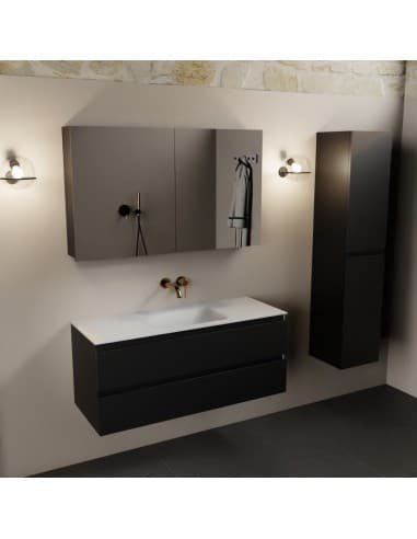 Aivy komplet badmiljø med spejlskab i MDF og solid surface uden hanehul B121 cm – Sort/Talkum